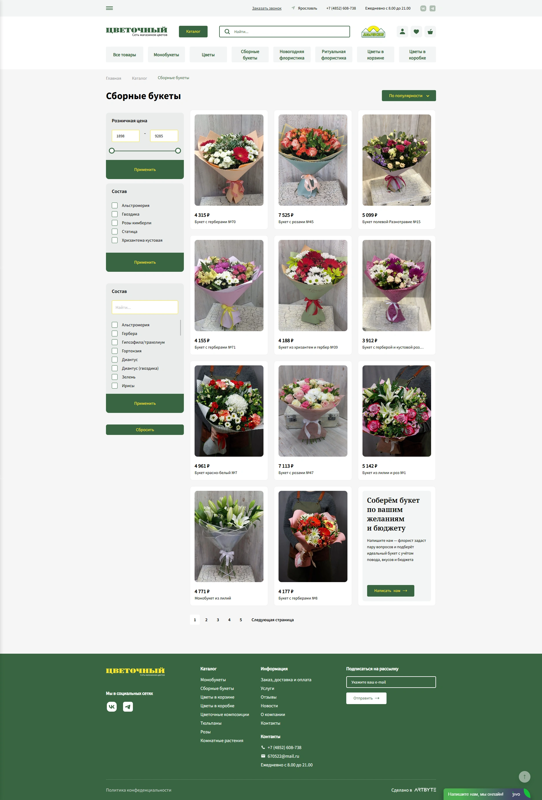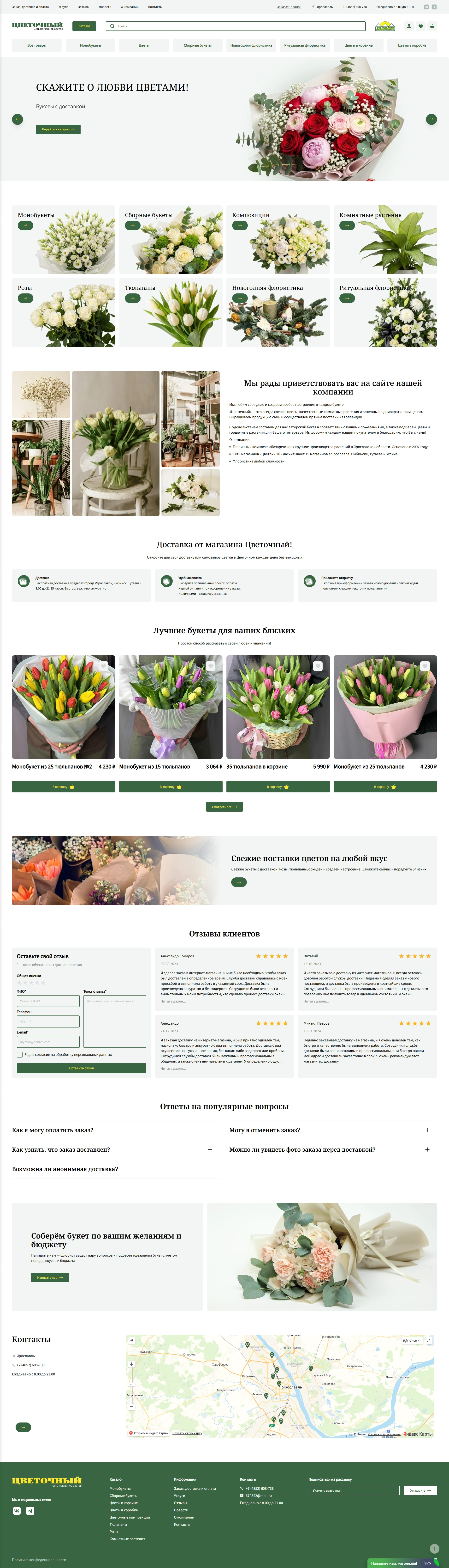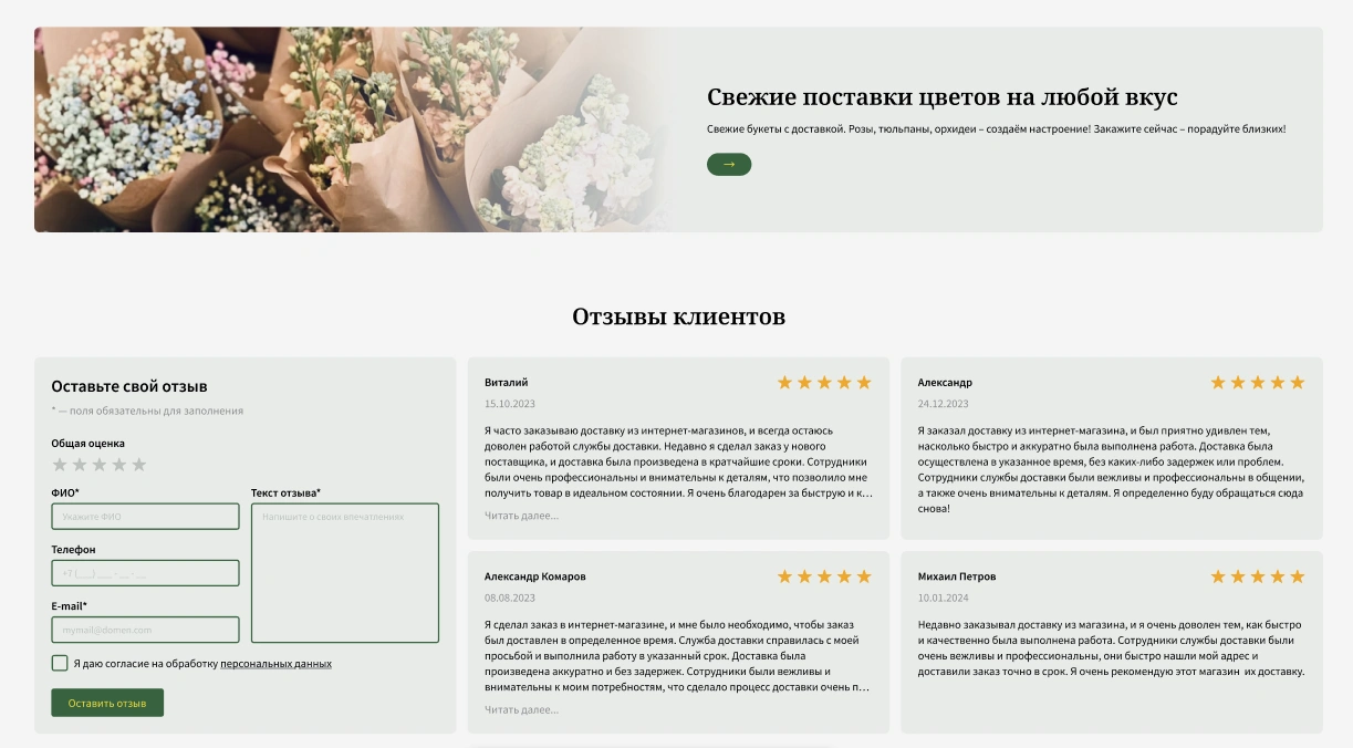 Разработать интернет-магазин для сети магазинов «Цветочный» для упрощения онлайн-заказа букета с доставкой или самовывозом, ознакомления с ассортиментом магазинов сети.